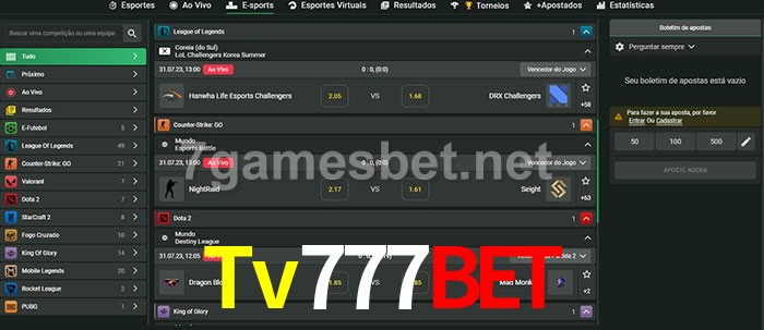 O Tv777Bet oferece uma grande seleção de opções de apostas em e-sports com probabilidades competitivas